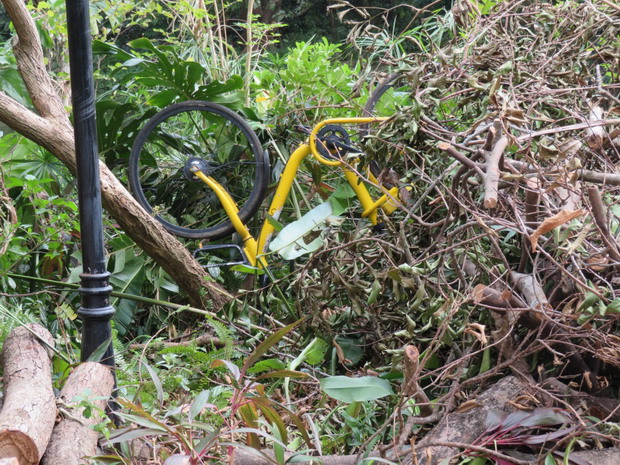 與廢棄樹枝堆成一團(tuán)的共享單車 深圳論壇網(wǎng)友“noelam”攝