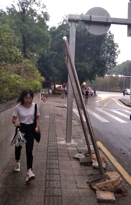 被“山竹”吹歪的交通路牌 深圳新聞網(wǎng)記者高暢韻攝