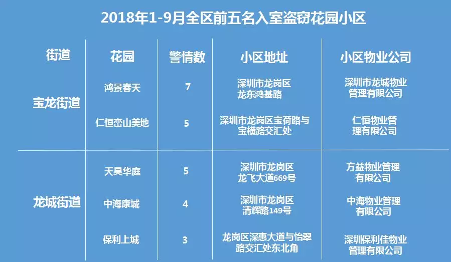 復盤今年龍崗區(qū)花園小區(qū)入室盜竊榜單