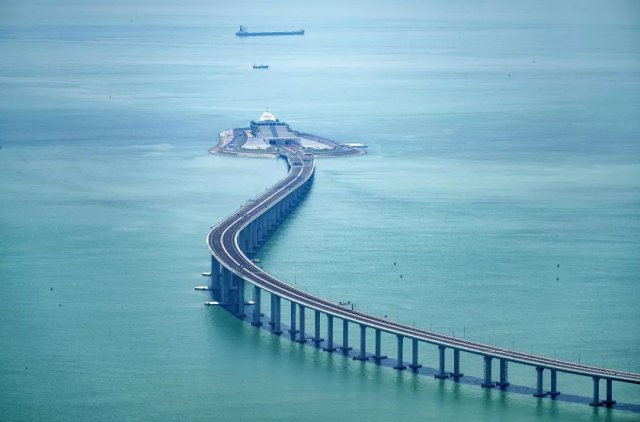 其中,粵港澳三地共同建設的主體工程長約29.6公里,由長達22.9公里的橋梁工程和6.7公里的海底沉管隧道組成,隧道兩端建有東、西兩個人工島,兩個人工島隔海相對,中間海浪翻飛,氣勢壯闊。