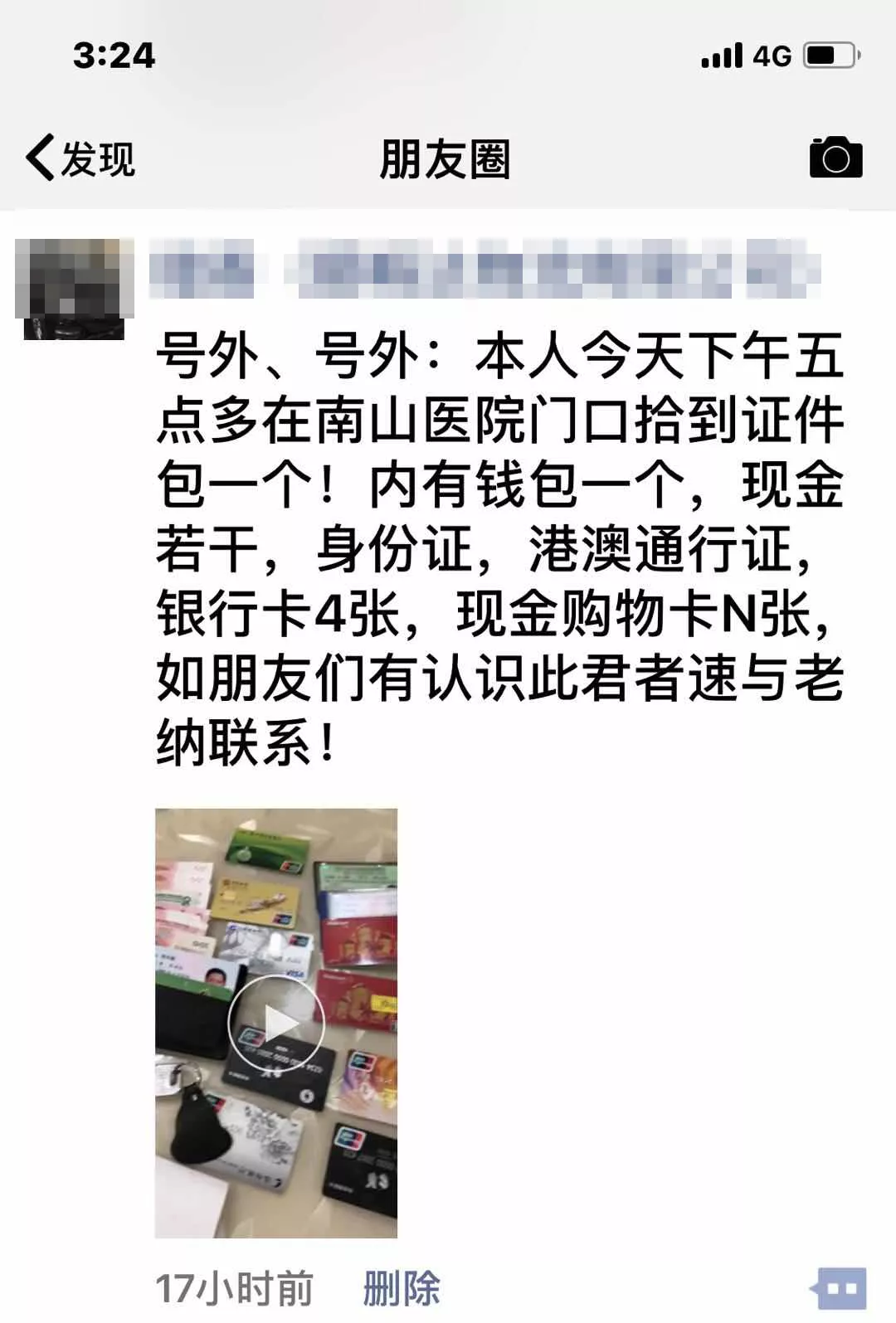 ▲梁先生在朋友圈發(fā)布的失物招領信息。