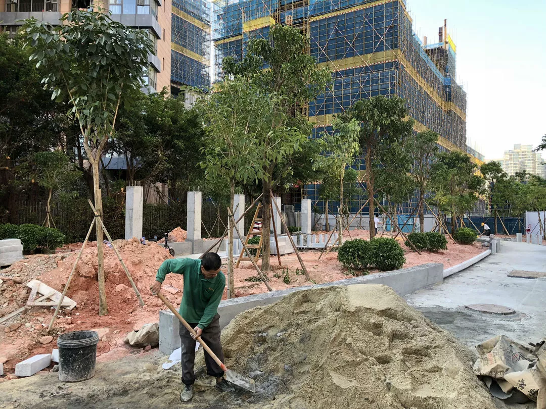 ▲街心公園施工中昨日下午,記者先后來到三個正在建設(shè)的街心公園走訪,大鏟社區(qū)街心公園、東角頭地鐵站A/B廣場(街心公園)剛剛動工,而后海濱路街心公園雛形初顯,公園路面已經(jīng)修好,工人正在種植喬木。