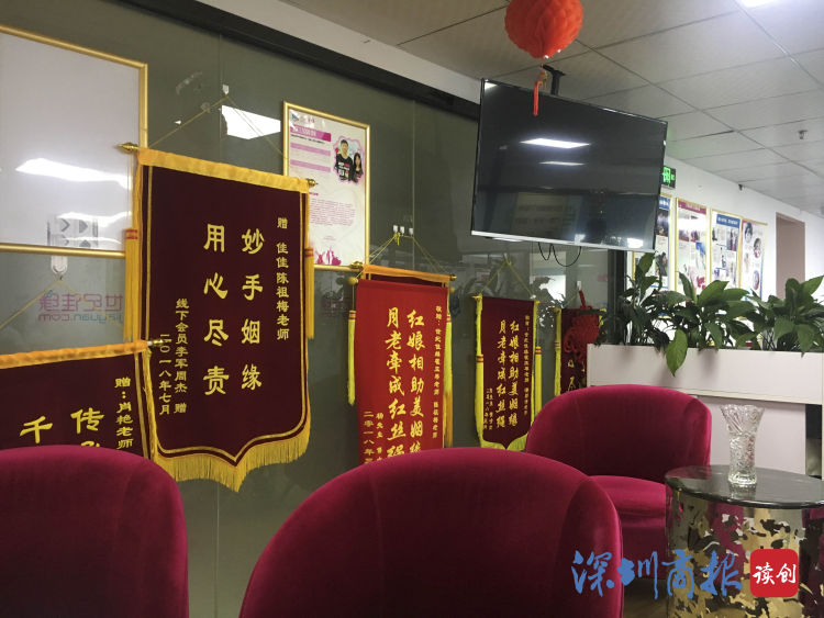 門店內(nèi),世紀(jì)佳緣客戶送來的錦旗。