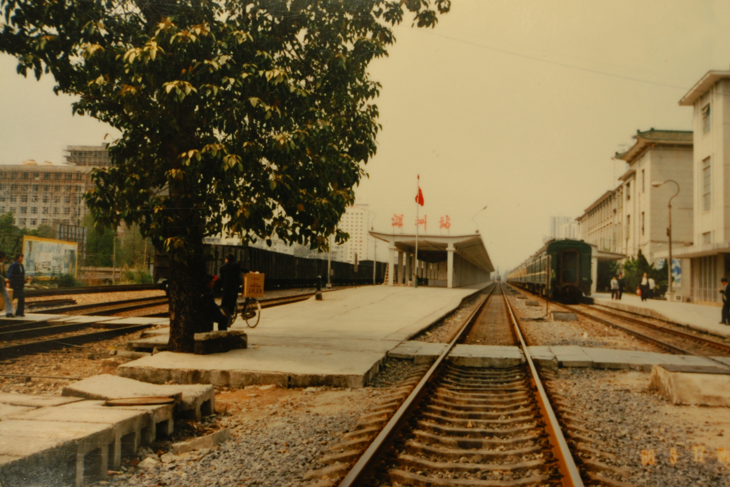 90年代,廣深線開行的列車為綠皮火車。圖中站內(nèi)指揮員引導(dǎo)列車
