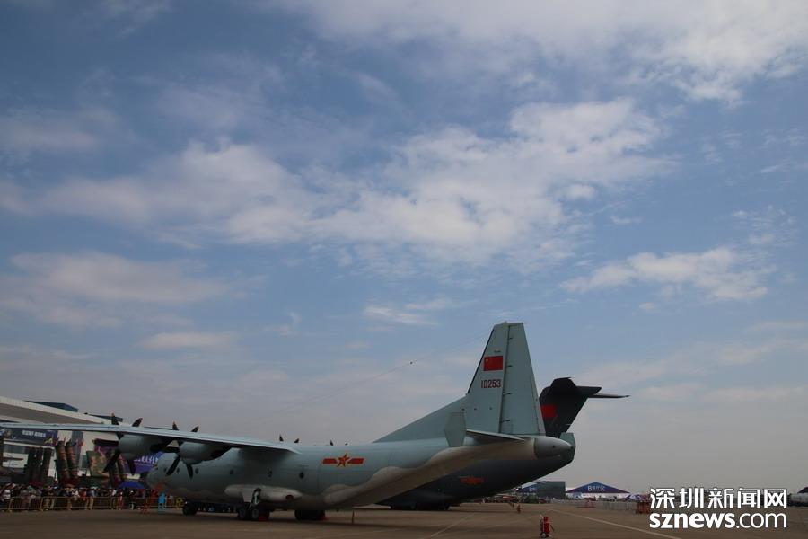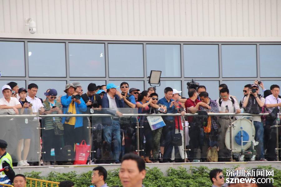 在運-9大飛機前拍攝的觀眾