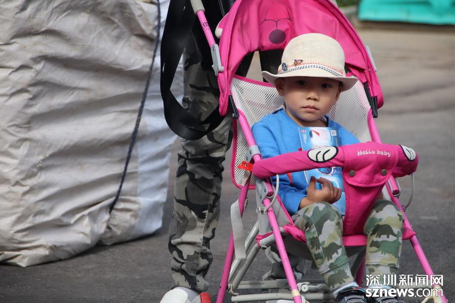 到了中午了,有小姑娘逛累了在推車上睡著