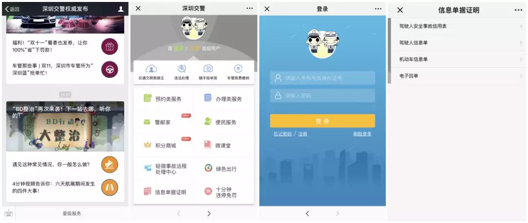 搜索公眾號“深圳交警” →登錄星級用戶 →選擇“信息單據(jù)證明” →選擇需要打印的證明類型