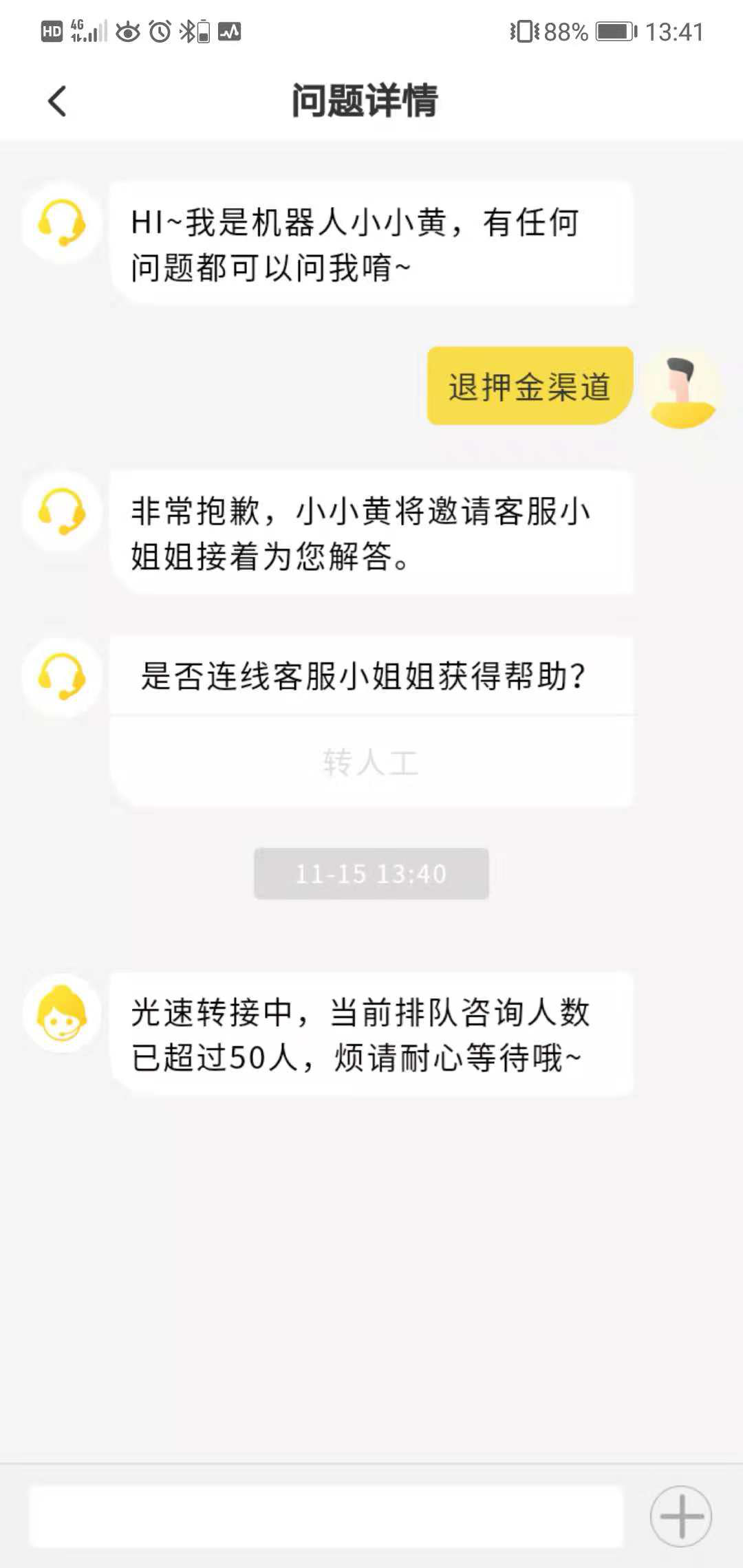 深圳特區(qū)報2018年11月16日訊“點(diǎn)人工服務(wù)永遠(yuǎn)顯示前面排隊超過50人,客服電話也打不通?!苯?有市民爆料稱,在ofo平臺退押金實屬不易。