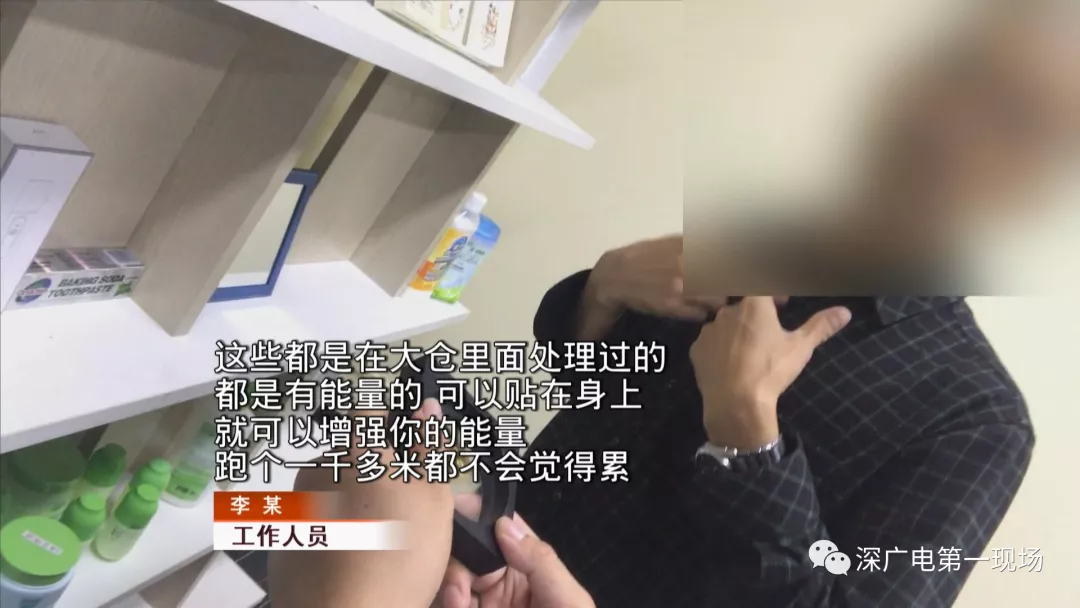 福代代工作人員:“我們就是只是在賣這個啊,(剛才你不是說沒有賣東西嗎)這個我們就是在分享啊,就是在分享這個,你看就是在分享啊,這個就是福代代,就是分享我們的產(chǎn)品啊?!?/p> “能量貼”:否認(rèn)可以治病 只是一個擺設(shè)