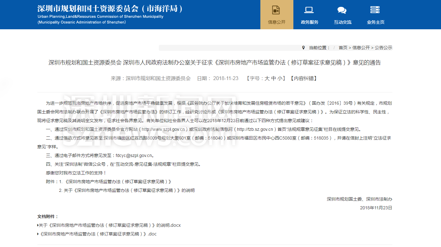 一、通過深圳市規(guī)劃和國土資源委員會官方網(wǎng)站(http://www.szpl.gov.cn)或深圳政府法制信息網(wǎng)(http://fzb.sz.gov.cn)首頁“法規(guī)規(guī)章意見征集”欄目在線提交意見。