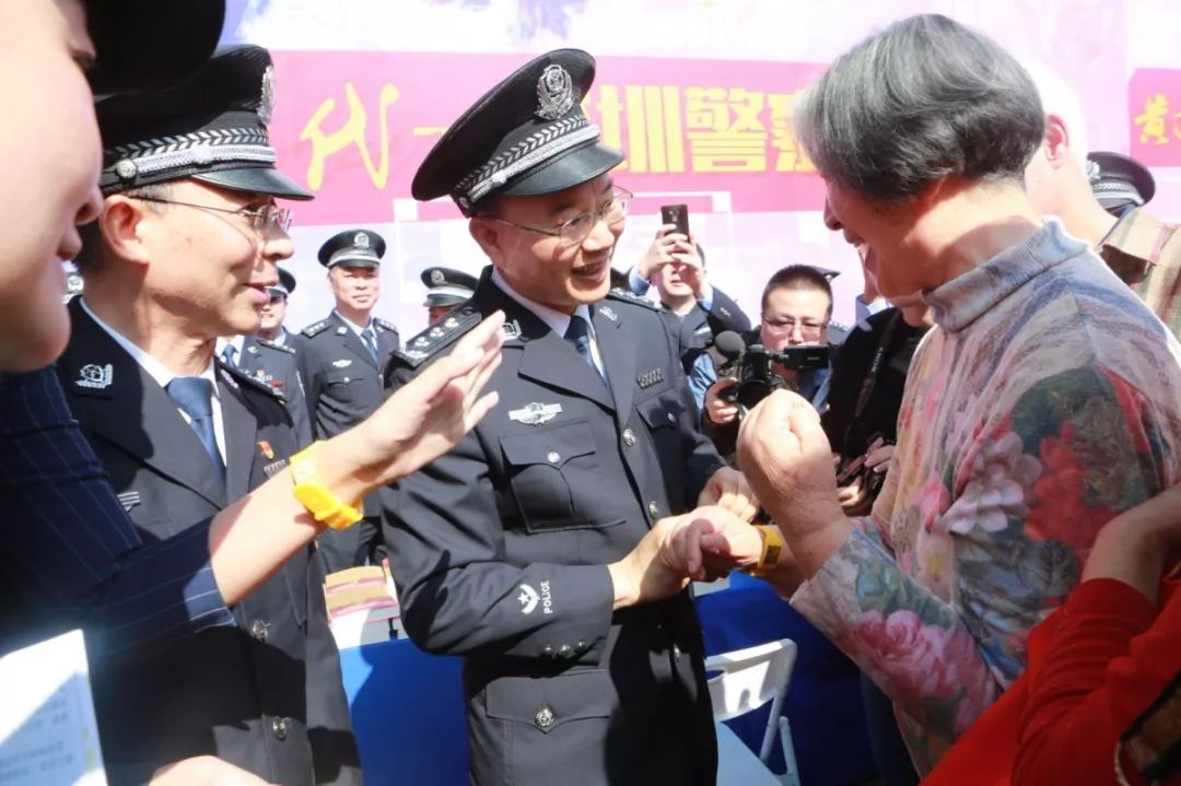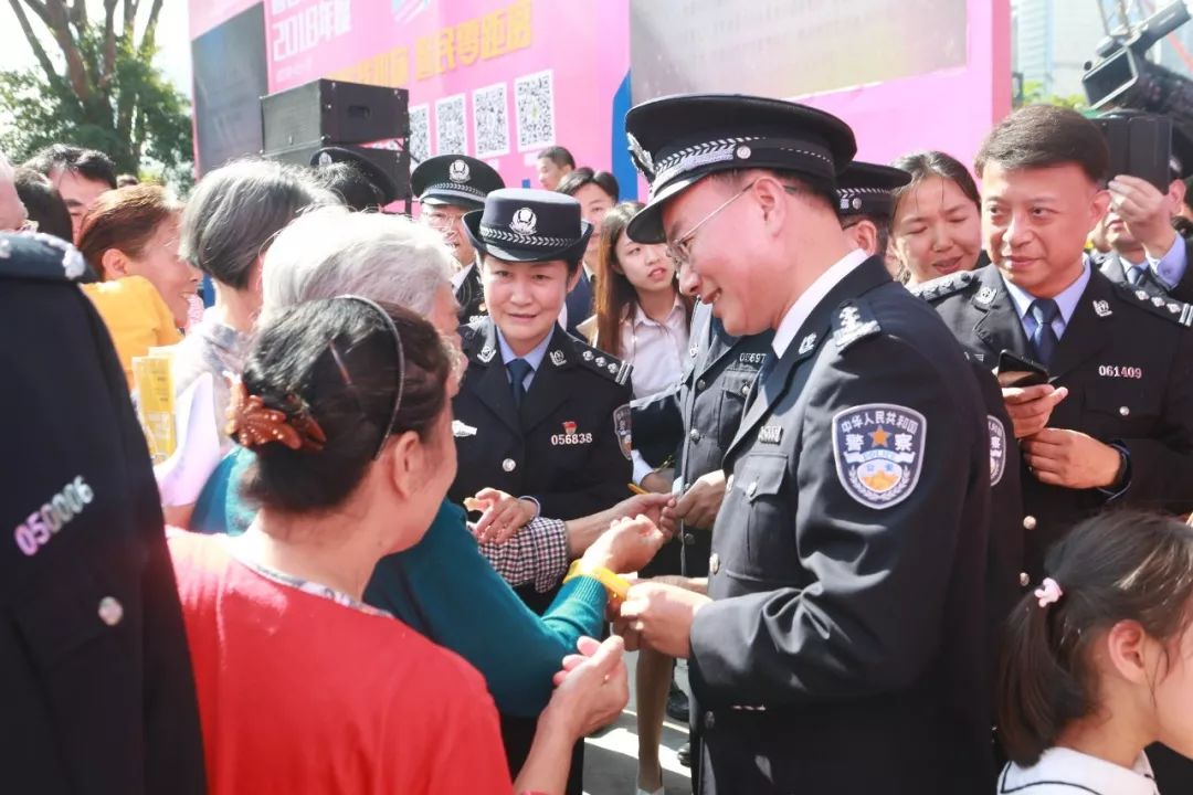 儀式后,深圳市副市長、公安局長徐文?,F(xiàn)場為來參觀活動(dòng)的老人和小孩佩戴了“黃手環(huán)”,陽光的顏色,給人溫暖,讓人安心,傳遞了正能量。