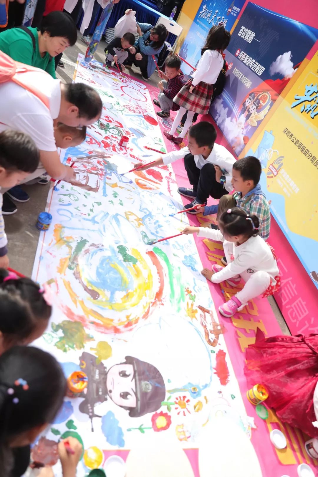 最具童年味道和勃勃生機(jī),大人和小孩現(xiàn)場涂鴉,寫出對(duì)警察想說的話,也可以在畫架畫板上畫出自己心目中的警察,在孩子心中種下警察的種子,滿滿的寄語,是對(duì)福田警察的祝福和期待,這也是警察蜀黍肩膀上沉甸甸的責(zé)任和勇往直前的力量!