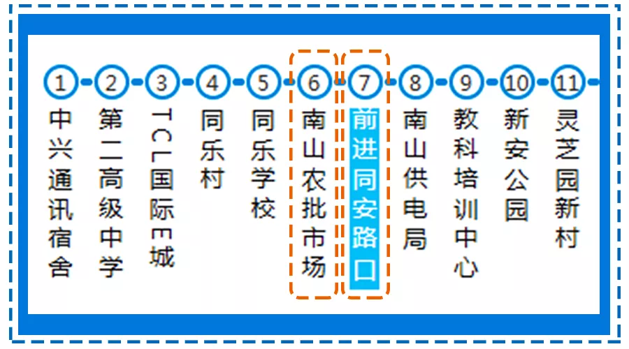 ▲學(xué)校附近有兩個公交站臺——前進(jìn)同安路口站和南山農(nóng)批市場站。