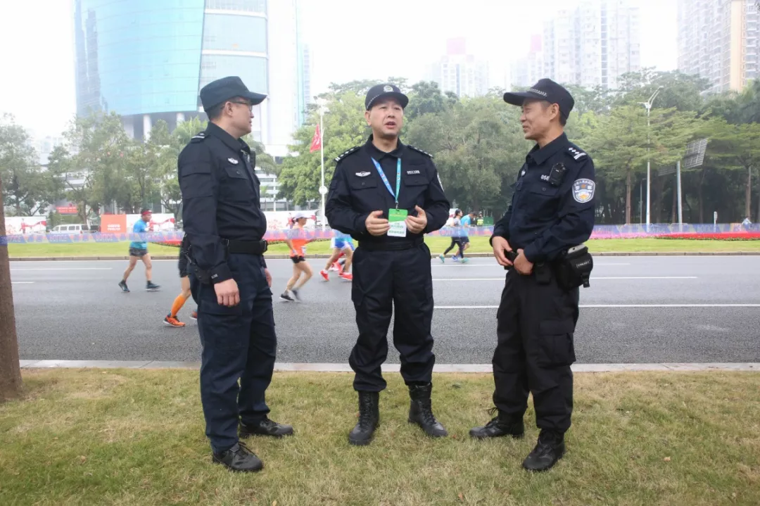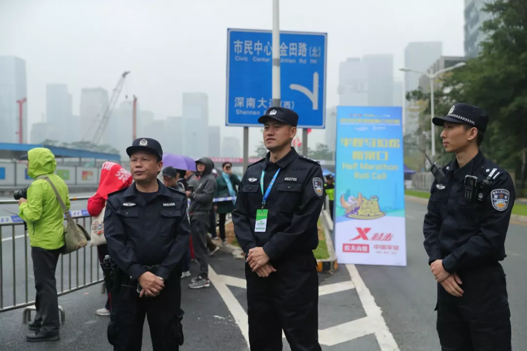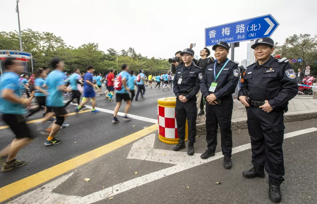 為全力做好此次馬拉松安保工作,福田警方提前謀劃、科學部署,承擔全程、半程馬拉松起點及6.2公里賽道的安全保衛(wèi),共出動警力1972人,啟用20套4G現(xiàn)場圖傳 “千里眼”,20套視頻識別探頭“守點”;警力實時定位系統(tǒng)、118個高低空視頻預案“守線”;71套現(xiàn)場視頻執(zhí)法記錄儀。從凌晨4點到下午2點,用長達10個小時的安?!榜R拉松”為賽事的順利開展保駕護航。