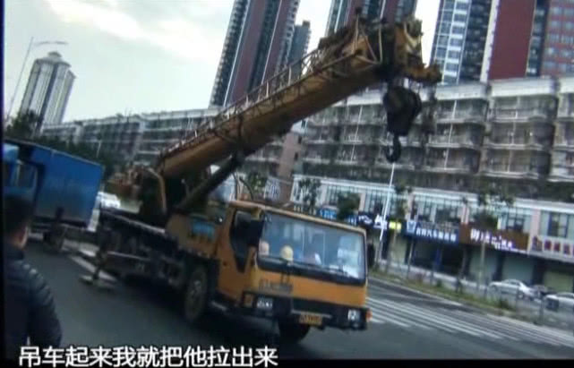盡管大家都想盡了辦法,但貨車的重量仍然讓被壓的司機(jī)無法脫身。這時(shí),有人看到了一部吊車經(jīng)過,馬上向吊車司機(jī)求救。