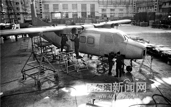 哈爾濱飛機(jī)制造公司自行研制的運(yùn)12多用途民用飛機(jī)取得了國(guó)內(nèi)首份按國(guó)際規(guī)范研制的民用飛機(jī)“型號(hào)合格證”,圖為當(dāng)年的制造車(chē)間。