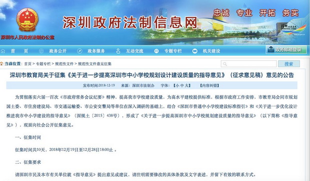 征集意見至12月28日下午6點(diǎn)截止,如對(duì)《指導(dǎo)意見》有想法或建議對(duì)市民,可將注明需要修改的具體條款用文字表述,并和有效的聯(lián)系方式一并發(fā)送到szxxjs@sz.edu.cn郵箱。