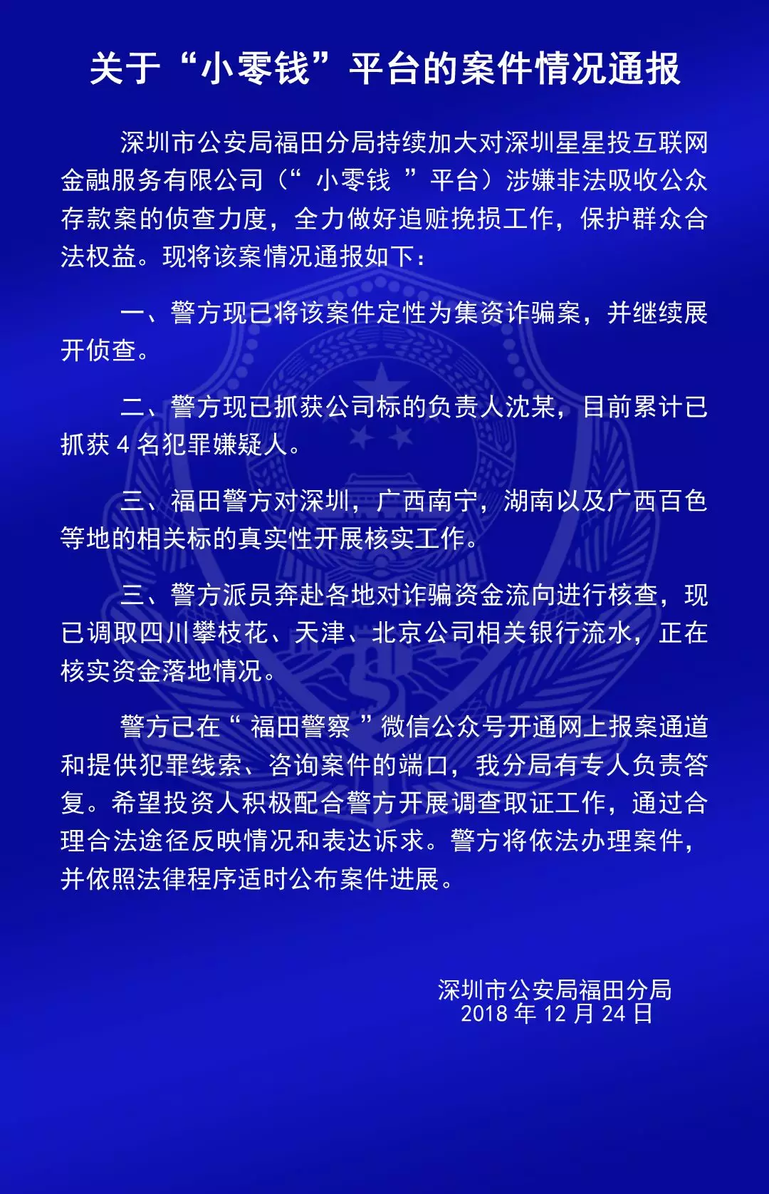 關(guān)于“合拍在線”“壹佰金融”“五星財(cái)富”“眾車(chē)在線”“財(cái)富中國(guó)”“小零錢(qián)”“錢(qián)爸爸”“合時(shí)代”和“前金融”平臺(tái)的案情通報(bào)
