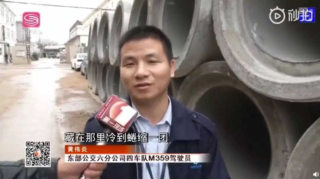 12月22日晚上十點多,東部公交六分公司四車隊的公交司機黃師傅剛剛下班,回家路上經(jīng)過坪山區(qū)金牌路時,聽到擺放在路邊的排污下水管道有聲音便上前查看。