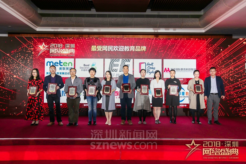 “十大行業(yè)最受網(wǎng)民歡迎品牌”獎項(教育)獲獎代表上臺領獎
