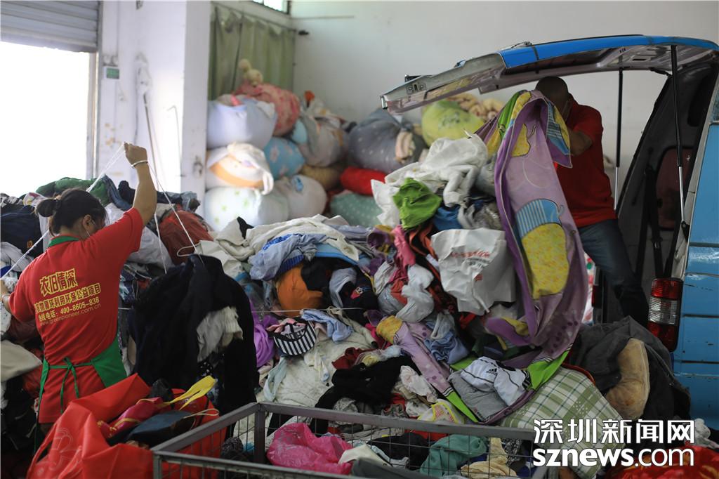 深圳新聞網(wǎng)12月27日訊(記者 鐘鴻冰 齊釗遠(yuǎn))隨著人們生活水平不斷提高,市民淘汰衣服的速度也越來(lái)越快。深圳自2014年開(kāi)始對(duì)廢舊織物進(jìn)行分類投放,廢舊織物回收箱也開(kāi)始在各個(gè)小區(qū)陸續(xù)設(shè)立。那回收的衣服最后到底去了哪里呢?12月26日,記者跟隨負(fù)責(zé)福田部分小區(qū)廢舊織物回收的衣舊情深環(huán)??萍纪顿Y有限公司的工作人員開(kāi)始了廢舊織物回收之旅。