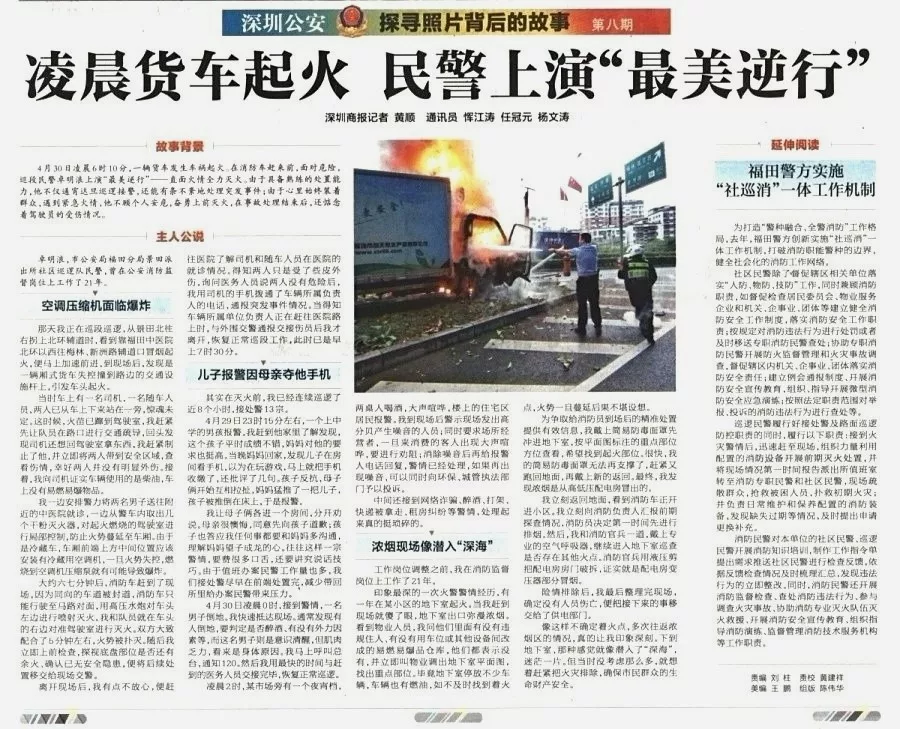 ★★景田派出所巡邏民警卓明浪面對(duì)熊熊燃燒的貨車(chē)和隨時(shí)可能發(fā)生的爆炸,無(wú)所畏懼、反應(yīng)快速、處置專業(yè),把損失降為最低。
