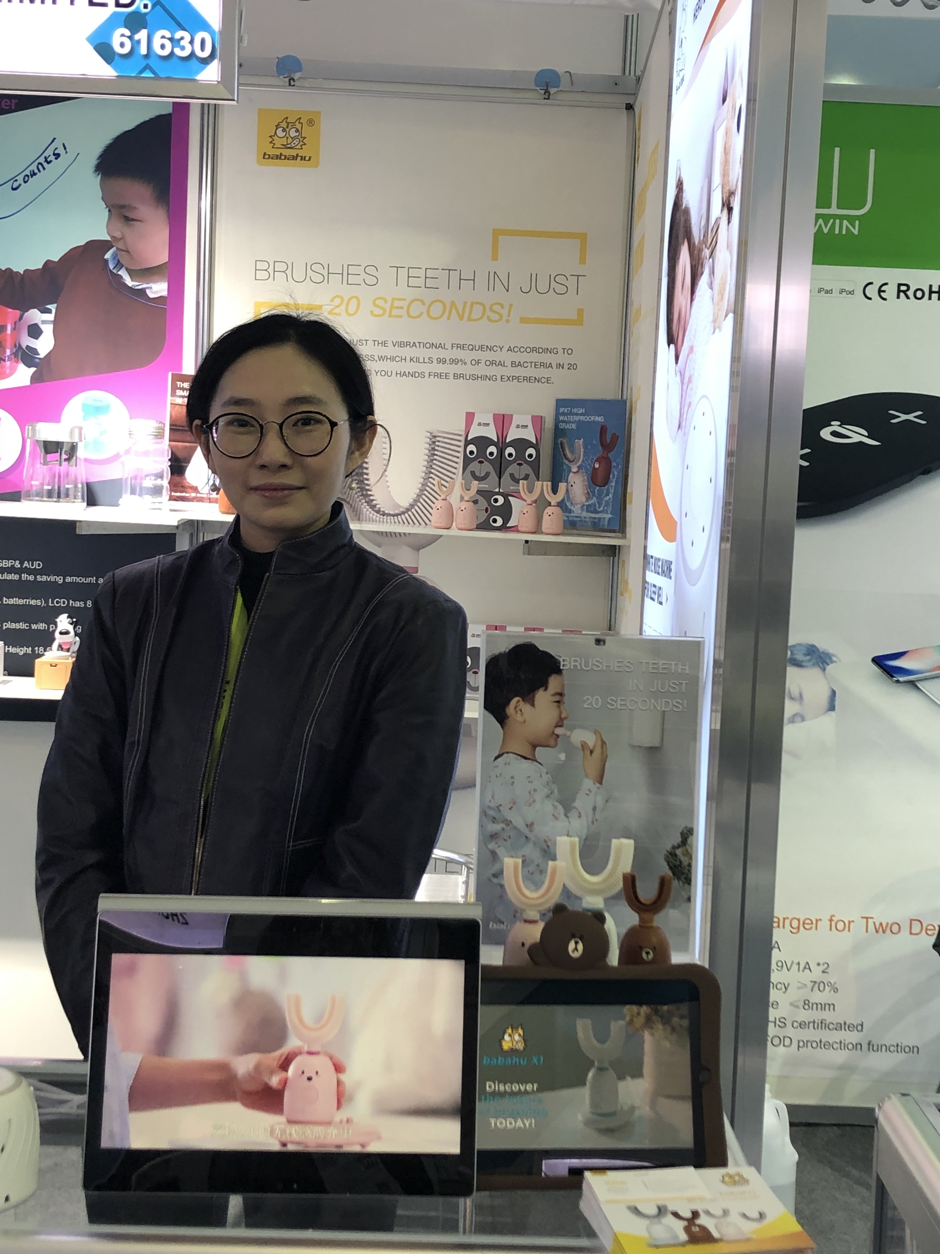 其中讓人眼前一亮的便是展館中的N.61630展位上,來自中國深圳的BABAHU。BABAHU作為珠海拜瑞口腔醫(yī)療股份有限公司旗下專注于口腔健康護理的一家公司,將近十年來沉浸在口腔行業(yè)所擁有的經(jīng)驗,以及對中國人的口腔問題的深刻研究與了解,公司的研發(fā)團隊致力于用現(xiàn)代科技研發(fā)出能為用戶帶來專業(yè)的口腔護理智能產(chǎn)品,所以與日本知名家電研發(fā)團隊合作推出了第一款智能產(chǎn)品---babahu兒童智能6D口含式刷牙器。