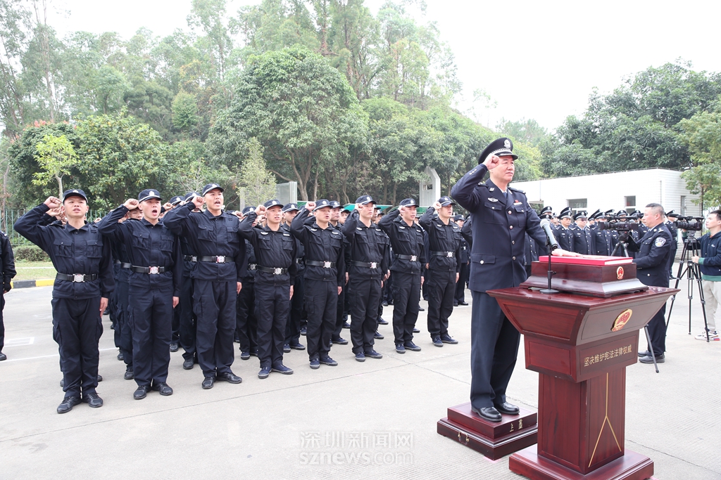 “我宣誓,忠于中華人民共和國(guó)憲法,維護(hù)憲法權(quán)威,履行法定職責(zé),忠于祖國(guó),忠于人民,恪盡職守,廉潔奉公,接受人民監(jiān)督,為建設(shè)富強(qiáng)民主文明和諧美麗的社會(huì)主義現(xiàn)代化強(qiáng)國(guó)奮斗!”鏗鏘誓言,猶在耳畔?;顒?dòng)中,深圳監(jiān)獄監(jiān)獄長(zhǎng)蔡曙光,帶領(lǐng)70名新入職警察面對(duì)國(guó)徽、手撫憲法,許下了他們忠于祖國(guó)、忠于人民的錚錚誓言,這也是深圳監(jiān)獄對(duì)新入職警察開(kāi)展集中的入職憲法宣誓。