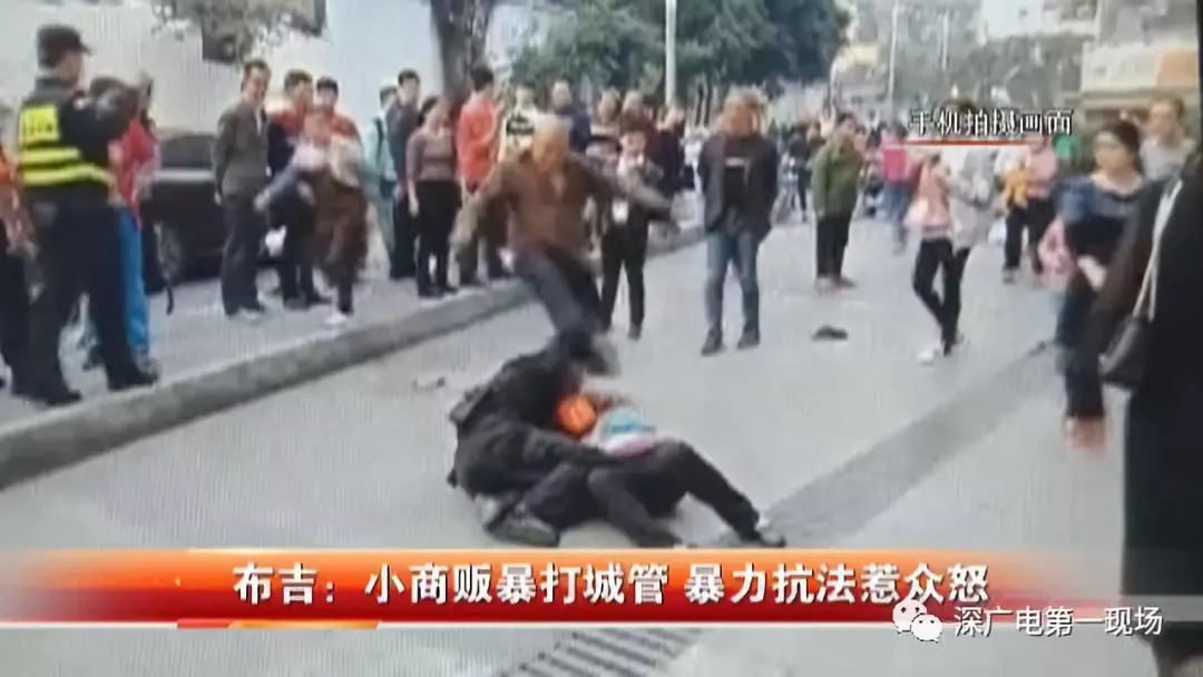 布吉一商販當(dāng)街暴打城管,還全家人輪番上陣!周圍群眾也怒了