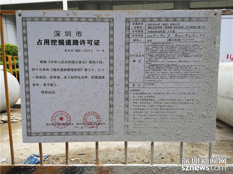福田區(qū)商報(bào)路施工現(xiàn)場掛有”占用挖掘道路許可證“