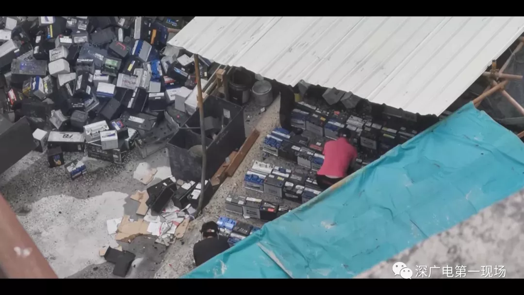 這是昨天下午2點多,記者跟隨南山區(qū)環(huán)保水務(wù)執(zhí)法人員,到現(xiàn)場查處時看到的情形。一處近500平米廢品回收場站內(nèi),廢舊電池堆積如山。