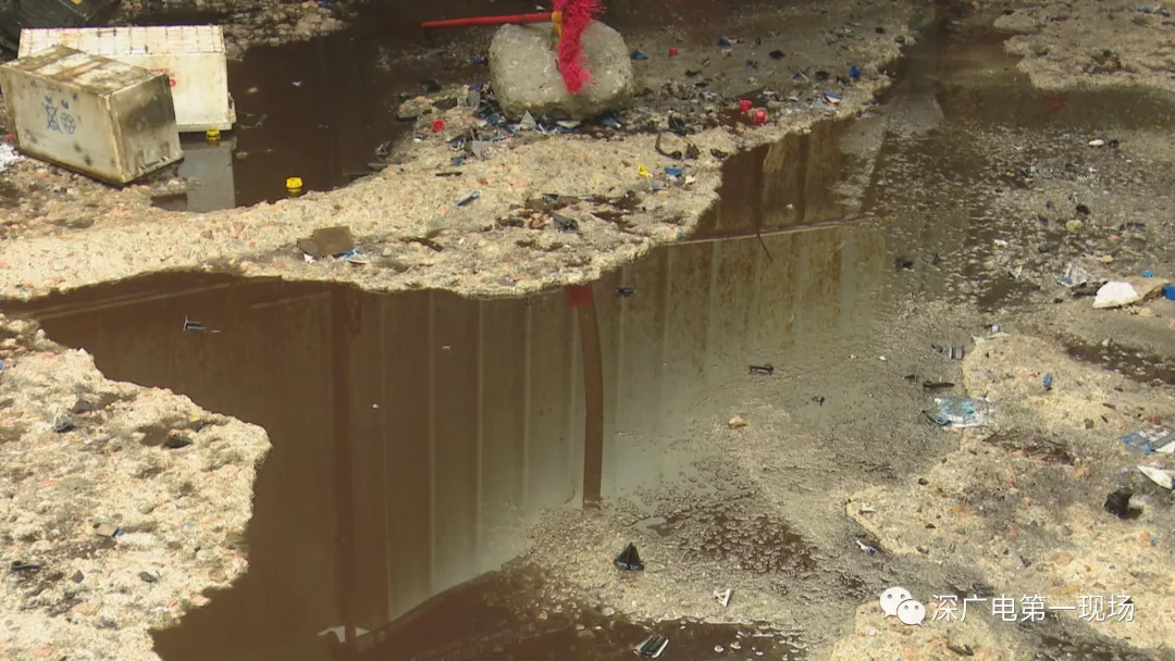 現(xiàn)場地表和圍擋的金屬,都已被強(qiáng)腐蝕性的電池廢液嚴(yán)重腐蝕。經(jīng)現(xiàn)場初步勘查得知,這里的電池廢液,通過地表流入了場內(nèi)的化糞池。執(zhí)法人員表示,廢液很有可能已影響到市政污水管網(wǎng)。