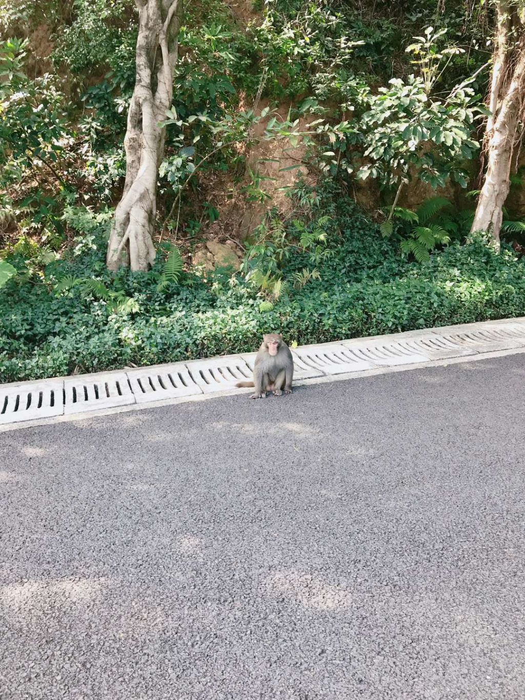 "這個東西很聰明,愛吃蘋果、香蕉和糖果,估計有三四十斤重,很肥。"今天上午,記者前往梅林山公園探訪猴子的蹤影。從梅山苑二期的梅林山公園入口一上公園主干道,記者就發(fā)現(xiàn)保安員陳先生正在路邊值守,梅林山公園管理處發(fā)現(xiàn)猴子后,就安排了保安員巡查看護(hù)。陳先生告訴記者,20日早上7點多猴子就出現(xiàn)在路邊,當(dāng)時公園人少,沒有討到吃的就走了。上午10點多,乘著游玩的人多猴子又跑出來湊熱鬧,保安員發(fā)現(xiàn)后拿了香蕉、橘子和糖果給它,猴子也一點不客氣,從人手里接過來就吃。原本靜謐的公園隨著猴子的出現(xiàn)熱鬧起來,圍觀的市民也紛紛慷慨解囊。這只胖乎乎的猴子一點也不怕人,最近時距離人不到一米遠(yuǎn),大家也親切叫它"肥仔"。