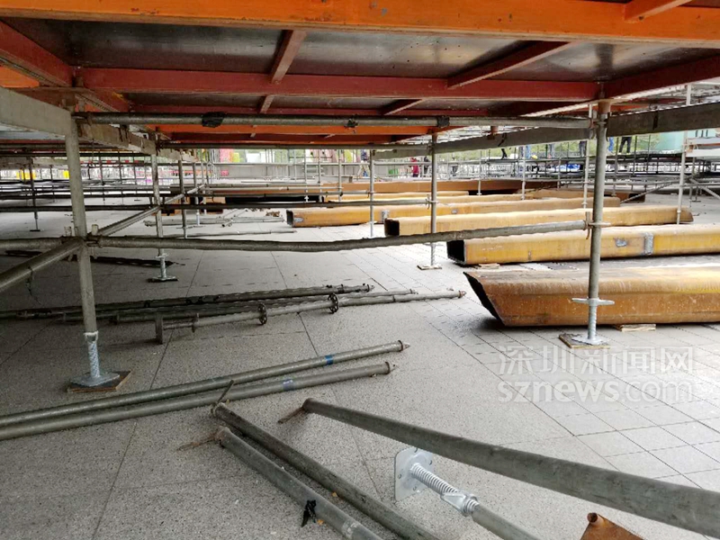 由于市民中心南廣場下為地下車庫,為了安全起見,舞臺以“遇河架橋”的思路進(jìn)行搭建(王啟文供圖)