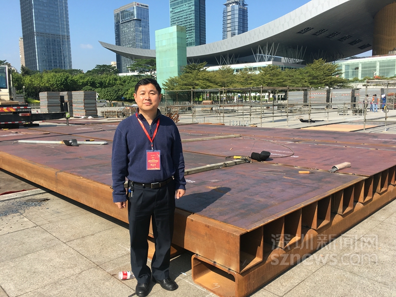 深圳建筑設(shè)計(jì)總院有限公司總工程師王啟文在舞臺搭建施工現(xiàn)場(王啟文本人提供)
