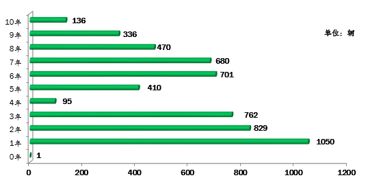 ▲行業(yè)教練車車齡統(tǒng)計圖(注:根據(jù)《機動車強制報廢標準規(guī)定》第五條規(guī)定:小型教練載客汽車使用10年)