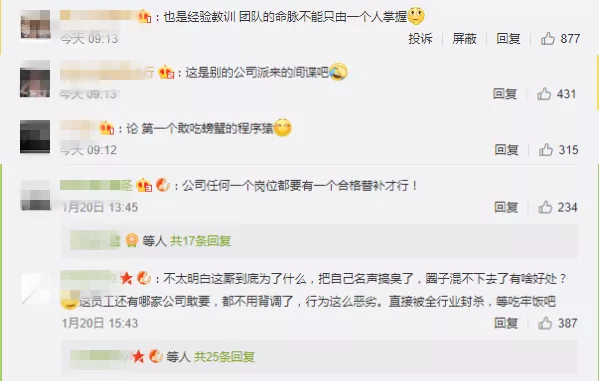 對此,網友紛紛直呼:什么仇什么怨?這是要有天大的仇才能干出這種事吧。如果該公司創(chuàng)始人說的都是實情,那么這個人毫無職業(yè)道德可言,之前就聽說過程序員刪服務器上數(shù)據的,其他公司也要引以為戒,如果再出現(xiàn)類似事件如何應對。