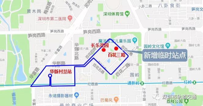 封閉施工期間,途經泥崗西路、筍崗西路、華富路、華強北路的54條公交線路、高峰專線、高快巴士臨時改道繞行。