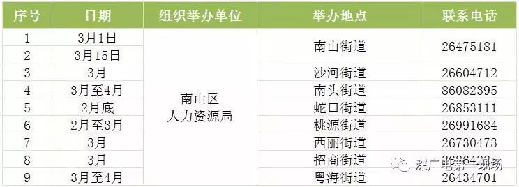 其中,深圳市公共就業(yè)服務(wù)中心26場,福田區(qū)27場,羅湖區(qū)40場,鹽田區(qū)14場,南山區(qū)9場,寶安區(qū)22場,龍崗區(qū)60場,龍華區(qū)56場,坪山區(qū)18場,光明區(qū)25場,大鵬新區(qū)9場。