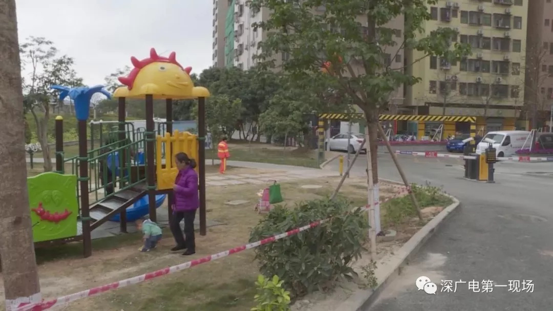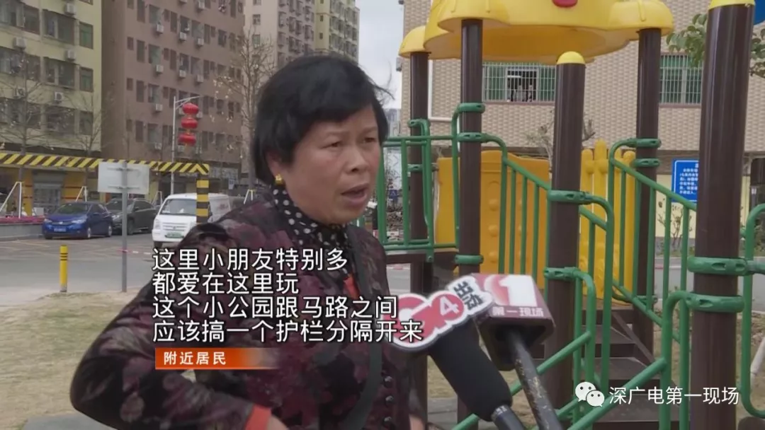 滑梯緊鄰?fù)\噲?chǎng) 居民盼望加護(hù)欄