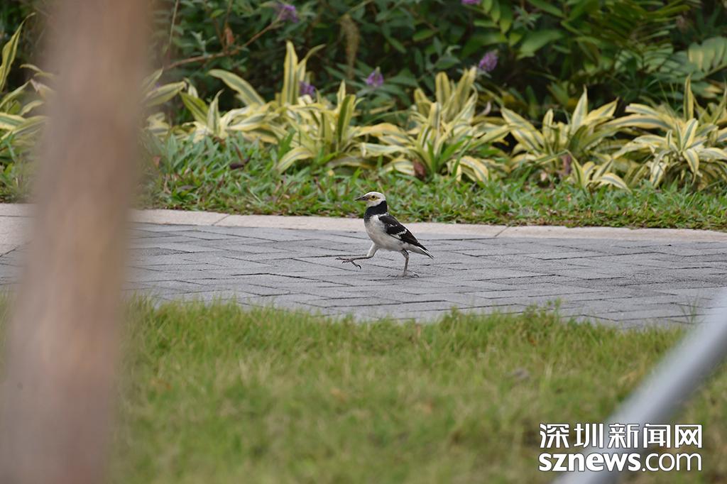 2018年11月12日,深圳紅樹林公園,一只候鳥在“散步”。因?yàn)闅夂蛞约吧指采w率高,深圳每年都吸引了數(shù)量不少的候鳥來過冬。 (圖/楊浩翰)