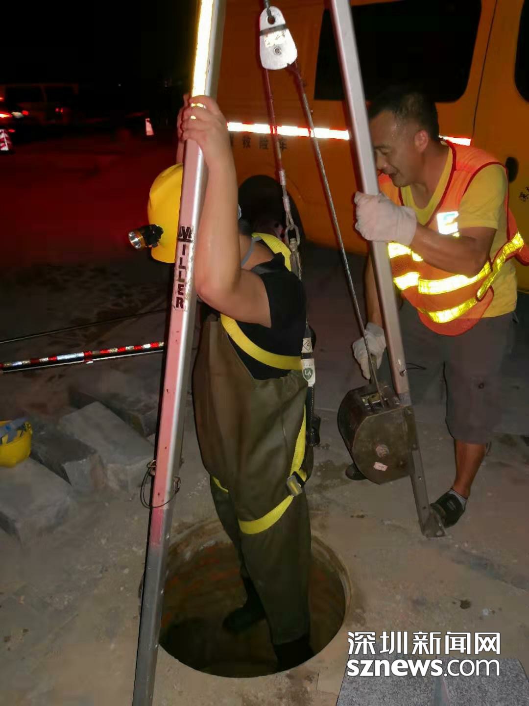 深圳的夏天很長,隨時趕上用水高峰,加上白天天氣炎熱,這種下井摸排通常在午夜進行。