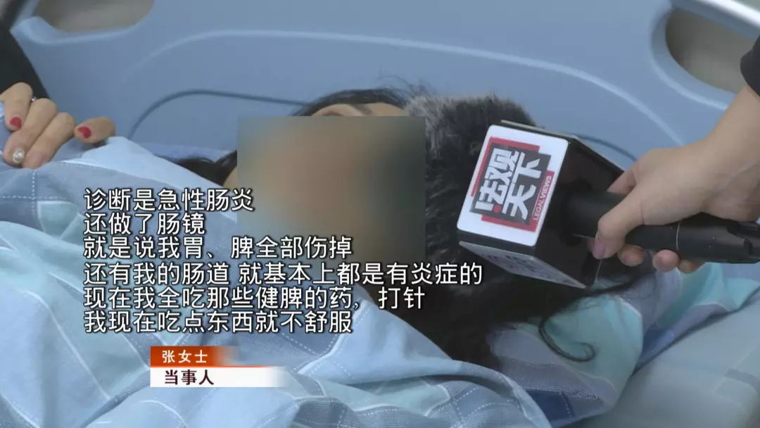 可是繼續(xù)服用酵素后,張女士發(fā)現(xiàn)身體情況還是不對勁,當(dāng)她再找楊女士進(jìn)行反映時,對方竟然把自己拉黑了。無奈之下,張女士找到了廣東天成健康管理有限公司的相關(guān)負(fù)責(zé)人,對方提供了一些中藥讓張女士服用。吃了幾副藥后,張女士的病情仍然未見好轉(zhuǎn),一月底,張女士住進(jìn)了醫(yī)院。一檢查,張女士發(fā)現(xiàn)自己一下瘦了二十斤,但是身體狀態(tài)大不如前,如今甚至要服用抗抑郁的藥物才能入睡。