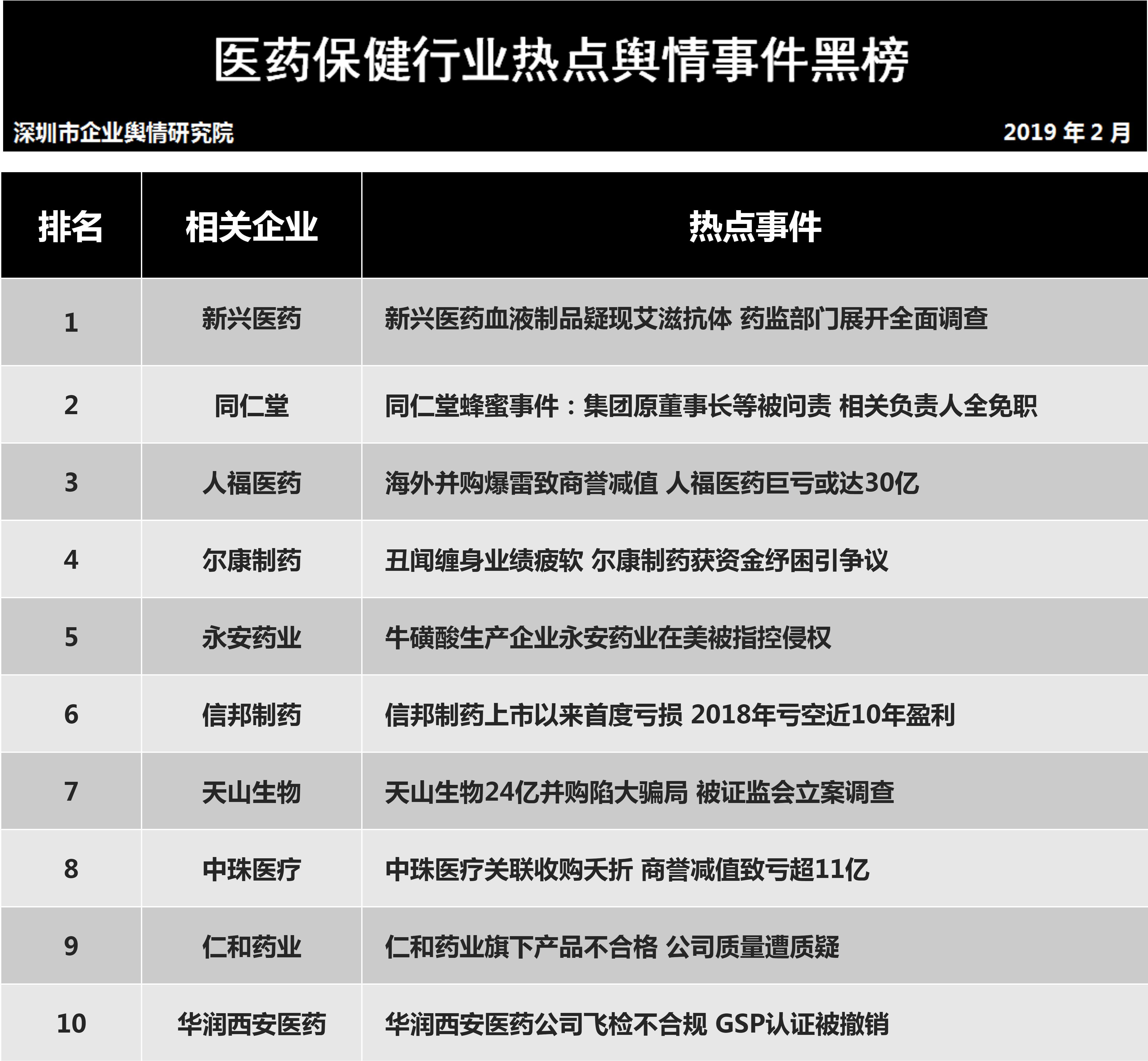 醫(yī)藥保健品行業(yè)熱點事件排行榜榜單說明: