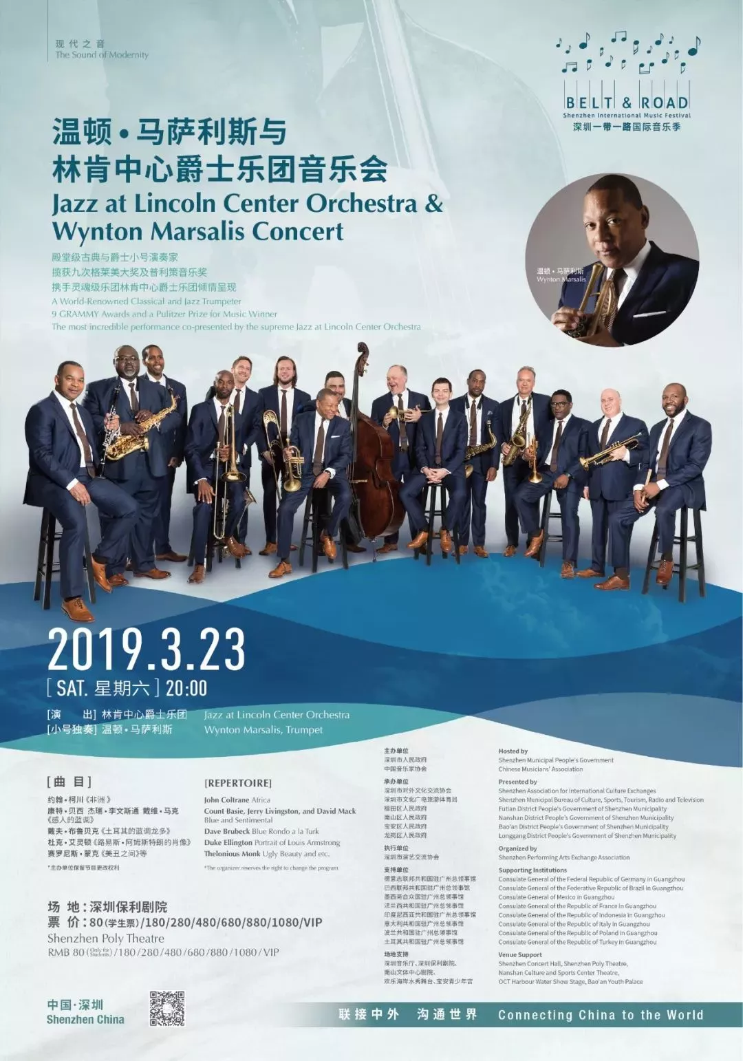 林大葉執(zhí)棒,溫頓 馬薩利斯,艾瑪 多伊徹參與,深圳交響樂團與絲路沿線藝術(shù)家共奏薈萃東西方經(jīng)典、世界音樂以及中國現(xiàn)代音樂作品絢爛樂章。