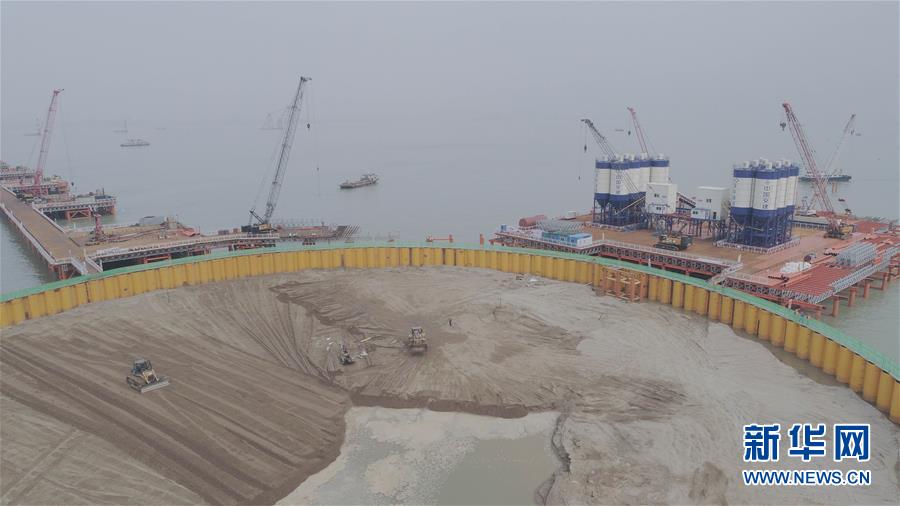 這是深中通道伶仃洋大橋東錨碇施工現(xiàn)場(3月13日無人機(jī)拍攝)。