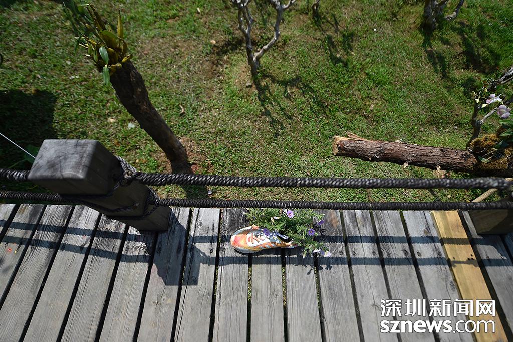園林設(shè)計(jì)師將廢棄的鞋子進(jìn)行二次利用,將花草種在鞋子中