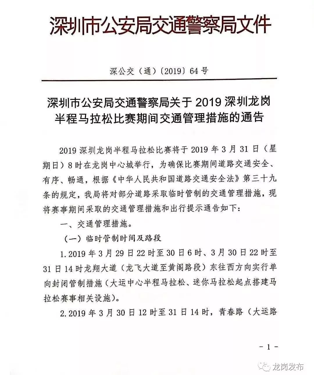 3月30日12時(shí)至31日14時(shí),青春路(大運(yùn)路至龍飛大道段)雙向?qū)嵭腥忾]管制措施(大運(yùn)中心半程馬拉松終點(diǎn)搭建馬拉松賽事相關(guān)設(shè)施)。