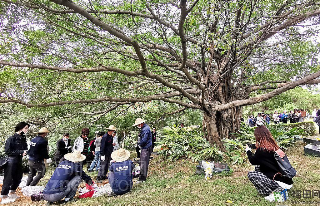 工作人員將骨灰埋葬在樹(shù)下。