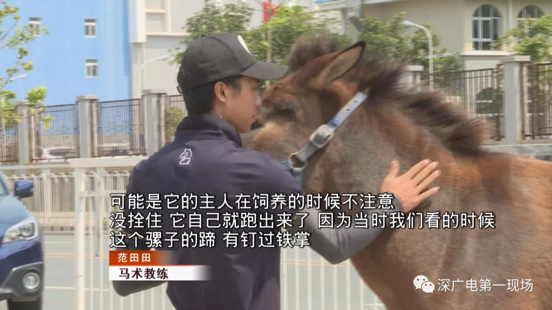 成年騾子路邊站崗是家養(yǎng)的,按照熱心市民留下的大概方位。記者在觀瀾街道庫(kù)坑社區(qū)平安路段終于看到了這個(gè)“稀客”的真容,只不過(guò)此時(shí)的它已經(jīng)被套上了韁繩,服服帖帖的站在馬術(shù)教練旁邊。